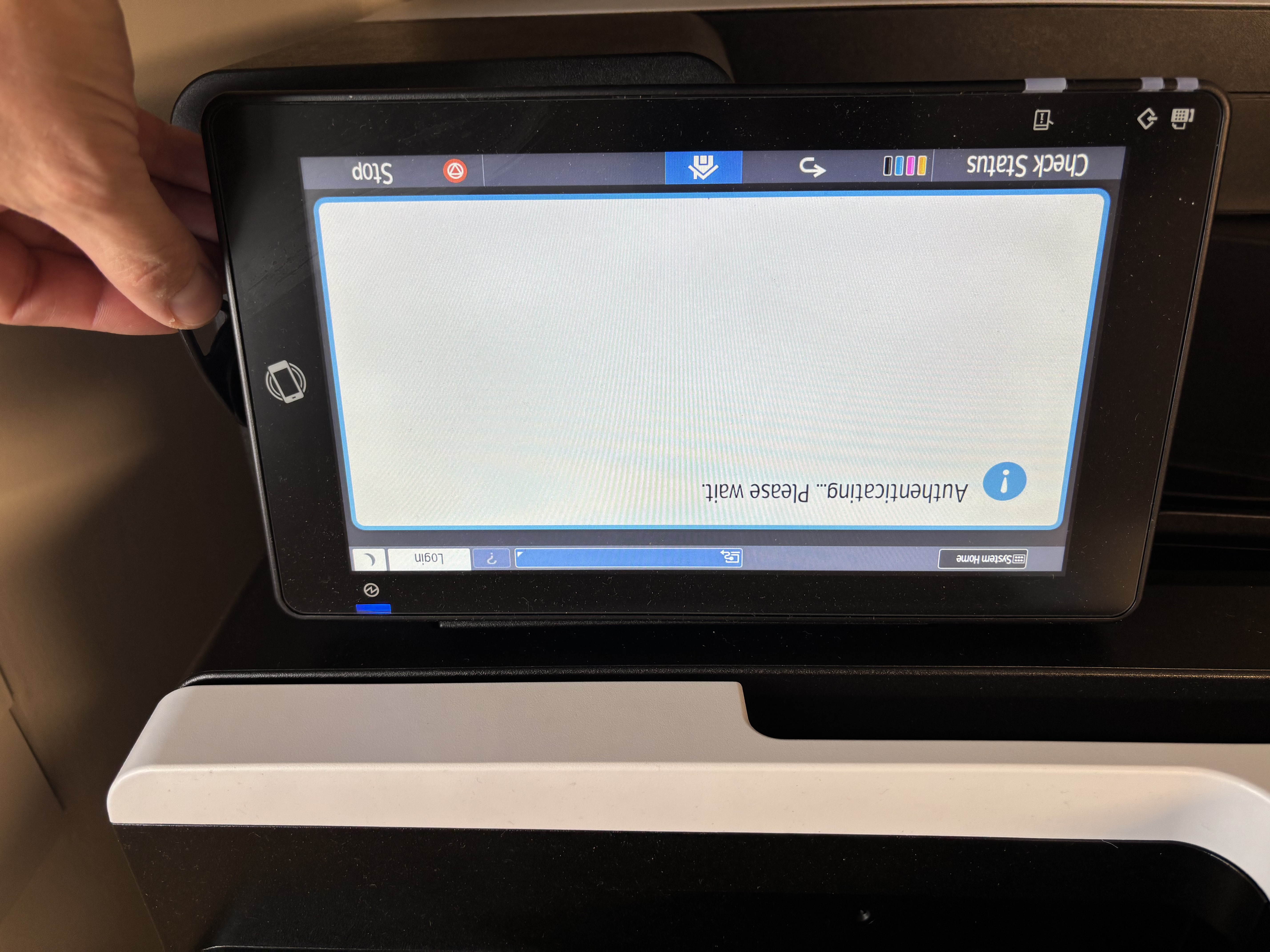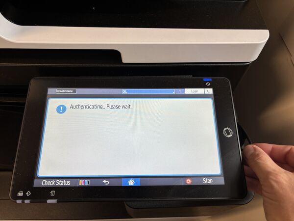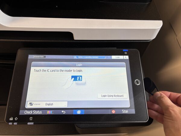 Hold your key in front of the card reader (the printer will wake up if it isn't):